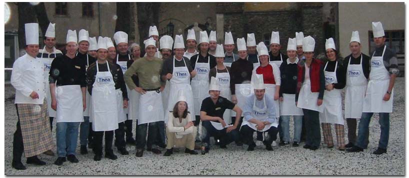 Eine Burg im Burgenland & ein Mobilfunkanbieter & der Apfelstrudel. UnKonventionelles Teambuilding Dass ein Apfelstrudel nicht nur gut schmecken kann, sondern auch die Herstellung eines solchen sehr viel Spass machet, bewies das Hotel-& Konferenzzentrum Burg Schlaining im Rahmen eines Team-Building Seminars für den Mobilfunkanbieter „ONE“. Ziel des Seminars unter der Leitung des Direktors Siegfried DÖRRE, war die Herstellung eines Apfelstrudels in der Form des „ONE“ Logos. Die Teilnehmer wurden, nachdem sie in gleichgroße Gruppen aufgeteilt wurden, kurz über die wichtigsten Punkte informiert und schon ging es los. Je nach Fähigkeit des Einzelnen in der Gruppe wurden die Arbeiten aufgeteilt. Das Teigkneten war eher etwas für die kräftigen Herren, das Äpfel schälen wurde größtenteils von den Damen übernommen, das marinieren war wiederum Männersache, galt es doch hier das richtige Maß an Rum hinzu zu geben. Bemerkenswert war, dass alle Gruppen innerhalb kürzester Zeit jeweils einen hauchdünn-gezogenen Strudel mit köstlicher Füllung in den Backofen schieben konnte. Die große Prämierung mit Urkundenverleihung erfolgte nach dem abendlichen Dinner, wobei hier „Rudi von Lockenhaus“ persönlich & in bester Manier spontan Gereimtes sehr zum Gaudium der begeisterten „ONE“ianer zu Besten gab. © by |